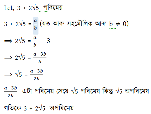 2. দেখুওৱা যে 3 + 2√5 অপৰিমেয় |