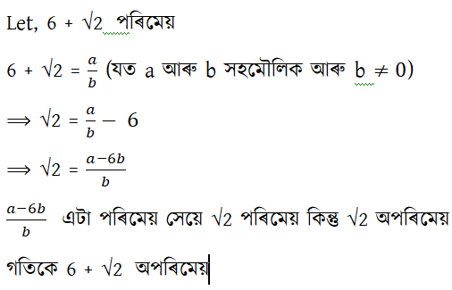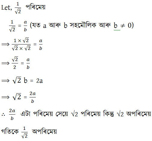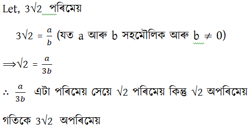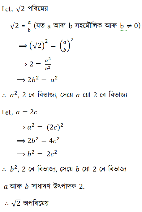 Example 1. দেখুওৱা যে √2 অপৰিমেয় |
