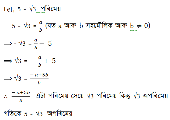 Example 5. দেখুওৱা যে 5 - √3 অপৰিমেয় |