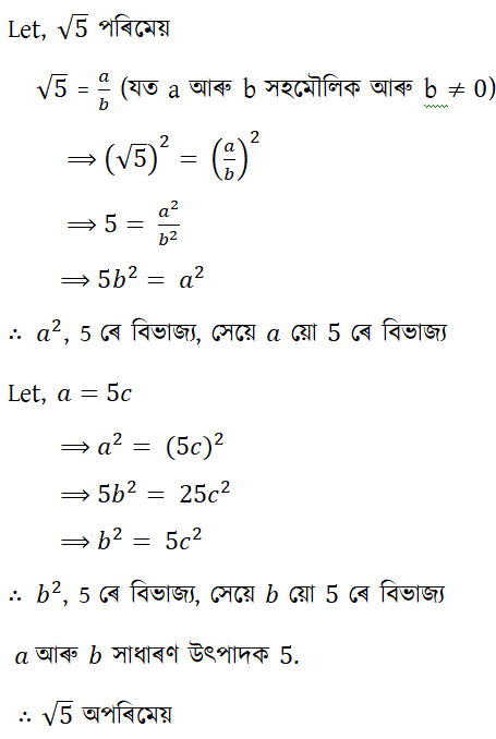 1. দেখুওৱা যে √5 অপৰিমেয় |