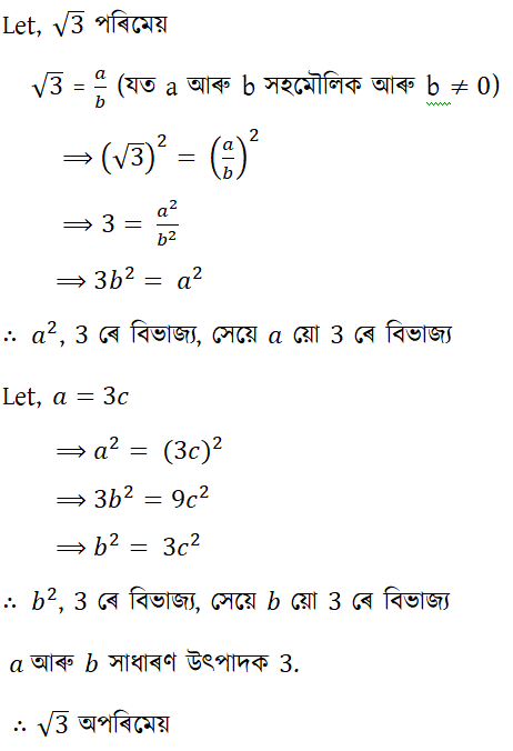 Example 2. দেখুওৱা যে √3 অপৰিমেয় |