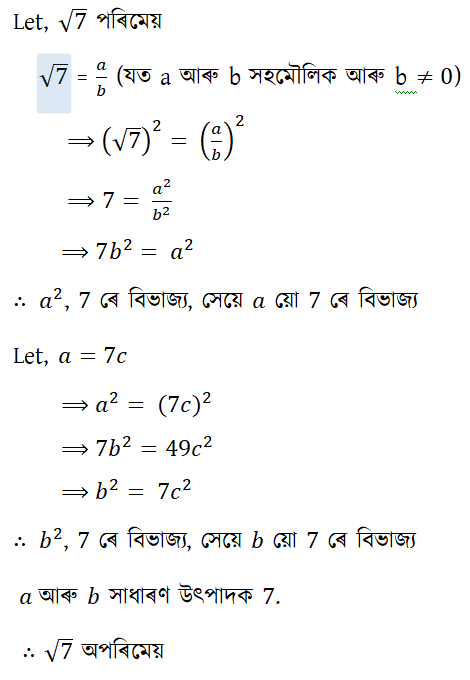 Example 3. দেখুওৱা যে √7 অপৰিমেয় |