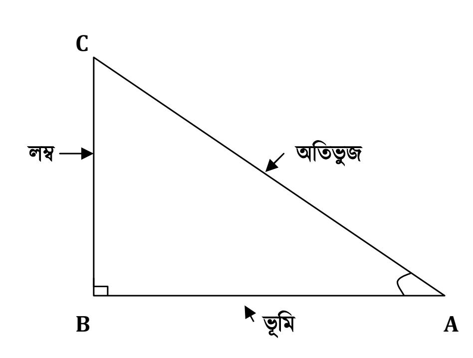ABC সমকোণী ত্ৰিভুজৰ B কোণ সমকোণ হ'লে আৰু ∠A কোণৰ বাবে