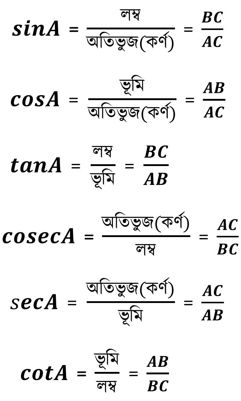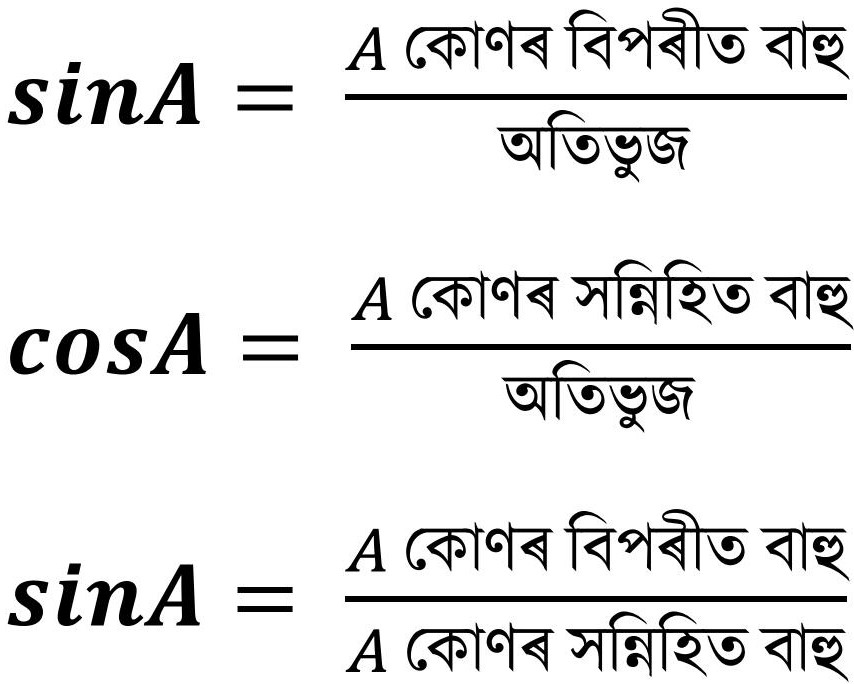 iii. 'cosecant of angle A' ৰ সংক্ষিপ্ত ৰূপ হিচাপে cosA ব্যৱহাৰ কৰা হয়।