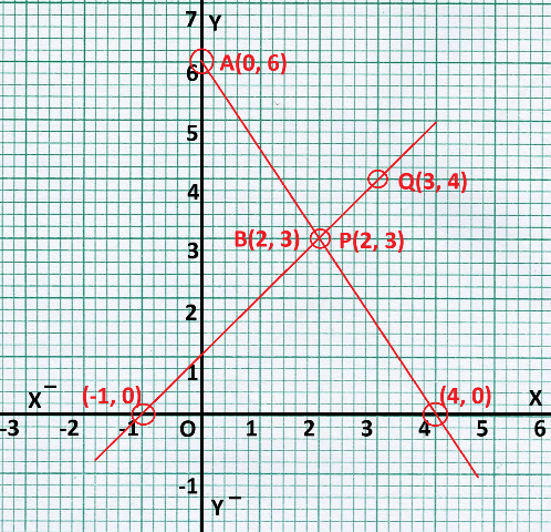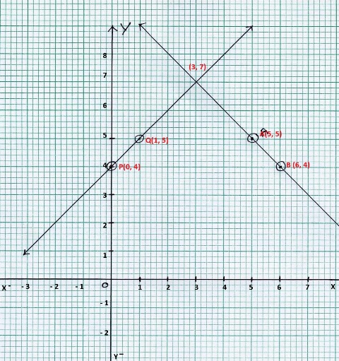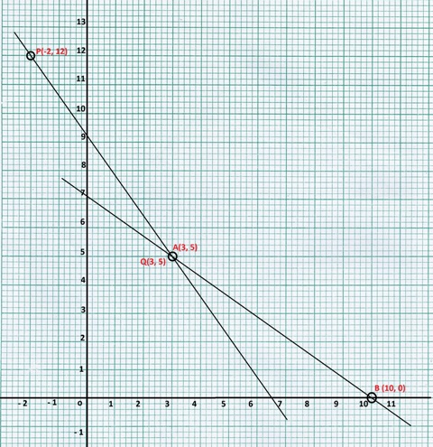 প্ৰদত্ত ৰেখাবোৰে (3, 7) বিন্দুটোত কটা কটি কৰিছে