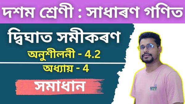 দ্বিঘাত সমীকৰণৰ ওপৰত SEBA দশম শ্ৰেণীৰ গণিত অধ্যায় 4 ৰ বাবে অনুশীলনী 4.2 ত গুণককৰণ, বৰ্গ সম্পূৰ্ণ কৰা, আৰু দ্বিঘাত সূত্ৰৰ দৰে পদ্ধতি ব্যৱহাৰ কৰি দ্বিঘাত সমীকৰণৰ সৈতে জড়িত সমস্যা সমাধান কৰাত গুৰুত্ব দিয়া হৈছে। এই অনুশীলনটো ছেবাৰ পাঠ্যক্ৰমৰ অংশ আৰু ই উন্নত গাণিতিক অধ্যয়নৰ বাবে মূল ধাৰণা গঢ়ি তোলাত সহায় কৰে।