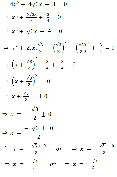 (iii) 4x2 + 4√3x + 3 = 0