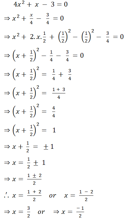 (vi) 4x2 + x - 3 = 0