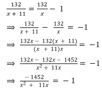 ⇒ (x2 + 11x)(- 1) = - 1452