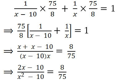 ⇒ 8(x2 - 10x) = 75(2x - 10)