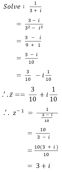 1. তলত দিয়া প্রতিটো জটিল সংখ্যাৰে সংযুগ্ম আৰু প্ৰতিক্রম (বা গুণাত্মক বিপৰীত) নির্ণয় কৰা