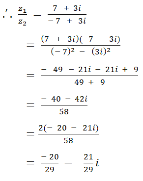 .'. z1z2 = (7 + 3i)(- 7 + 3i)