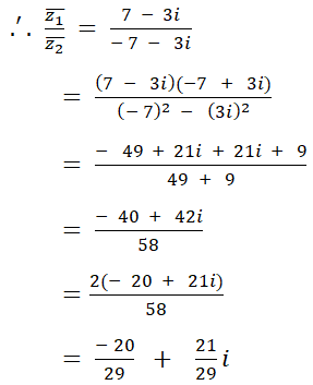.'. z1.z2 = (7 - 3i)(-7 - 3i)