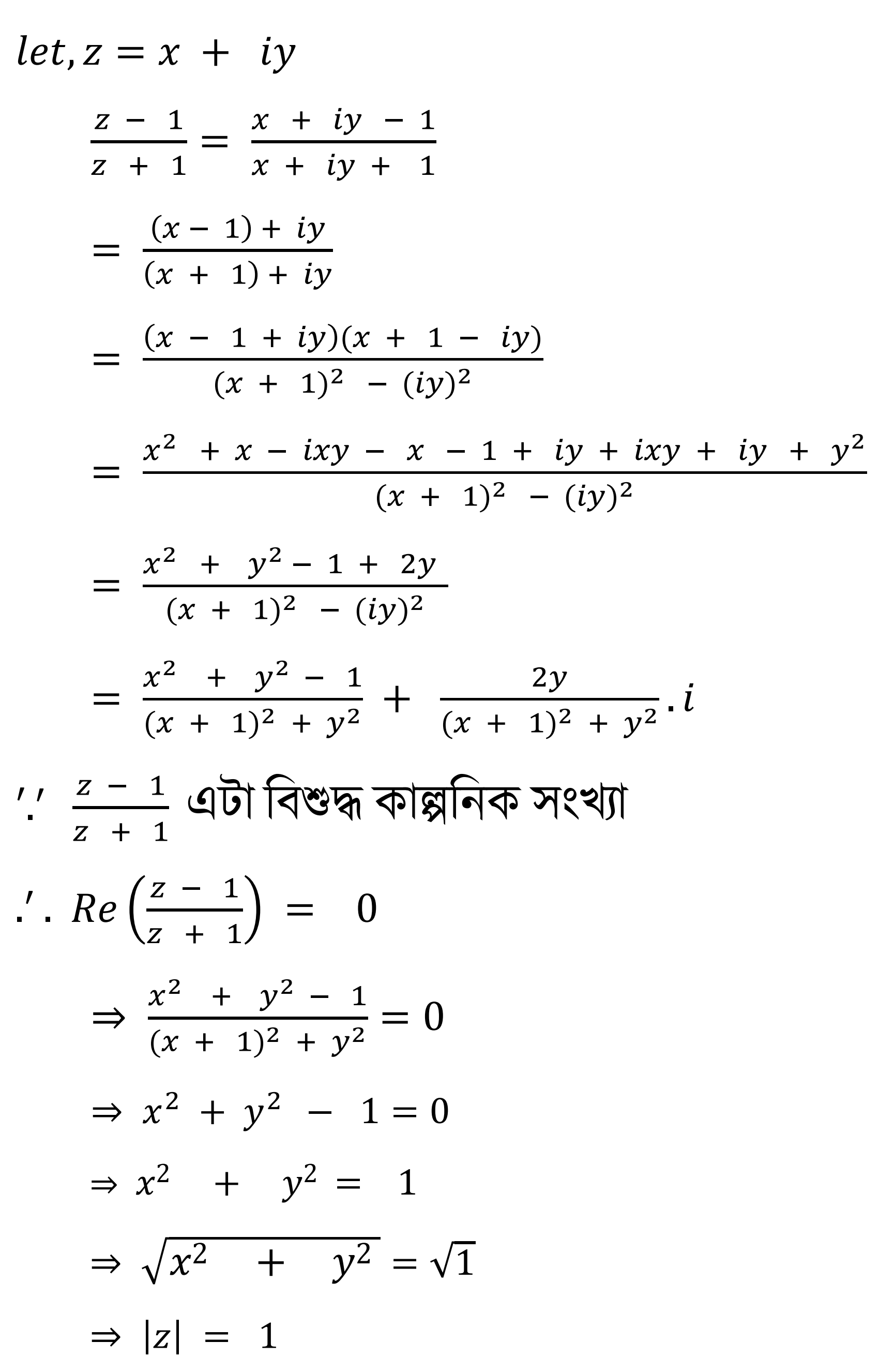 10. যদি z(≠1) এটা এনে জটিল সংখ্যা যে (z - 1)/(z + 1) এটা বিশুদ্ধ কাল্পনিক সংখ্যা তেন্তে দেখুওৱা যে |z| = 1 (বা দেখুওৱা যে x² + y² = 1, য'ত z = x + iy)