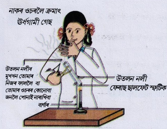 20. এটা উতলন নলীত 2gm মান লেড নাইট্ৰেট পাউদাৰ লোৱা আৰু চেপেনাৰে ধৰি বাৰ্ণাৰৰ শিখাত গৰম কৰা |