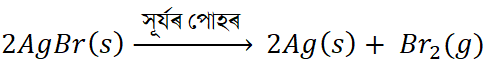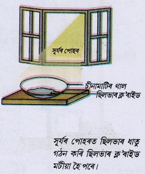 12. কি ঘটিব যেতিয়া সূৰ্যৰ পোহৰত চীনা মাটিৰ থালত ছিলভাৰ ক্ল'ৰাইড ৰখা হয় | সমীকৰণ লিখা |