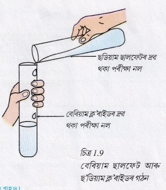 23. এটা পৰীক্ষানলত 3ml মান ছ'ডিয়াম ছালফেটৰ দ্ৰব্য লোৱা আন এটা পৰীক্ষানলত বেৰিয়াম ক্ল'ৰাইডৰ দ্ৰৱ লোৱা আৰু মিহলোৱা হ'ল |