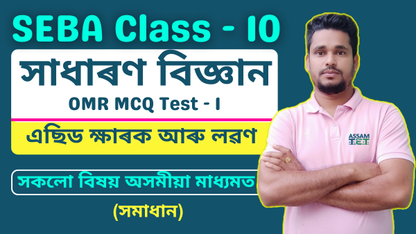SCERT অসম দশম শ্ৰেণীৰ সাধাৰণ বিজ্ঞানৰ অধ্যায় "এছিড, ক্ষাৰক আৰু লৱণ" সম্পর্কিত MCQ Test - 1। এই পৰীক্ষাত গুৰুত্বপূৰ্ণ প্ৰশ্নসমূহৰ সমাহাৰ, যি মাধ্যমিক পৰীক্ষাৰ বাবে সহায়ক হ'ব। এছিড, ক্ষাৰক আৰু লৱণৰ মৌলিক ধাৰণা, গুণাগুণ, প্ৰতিক্ৰিয়া আৰু উদাহৰণসমূহৰ ওপৰত ভিত্তি কৰি প্ৰস্তুত কৰা প্ৰশ্নোত্তৰ। SCERT অসম পাঠ্যক্ৰম অনুসৰি।