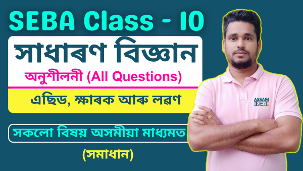 SCERT দশম শ্ৰেণী সাধাৰণ বিজ্ঞান, এছিড, ক্ষাৰক আৰু লৱণ - অনুশীলনী অসমীয়া মাধ্যমত। এই অনুশীলনীৰ সহায়ত দশম শ্ৰেণীৰ ছাত্র-ছাত্ৰীয়ে সহজে আছিড, ক্ষাৰক আৰু লৱণৰ বৈশিষ্ট্য আৰু প্ৰয়োগৰ বিষয়ে শিকিব পাৰিব।