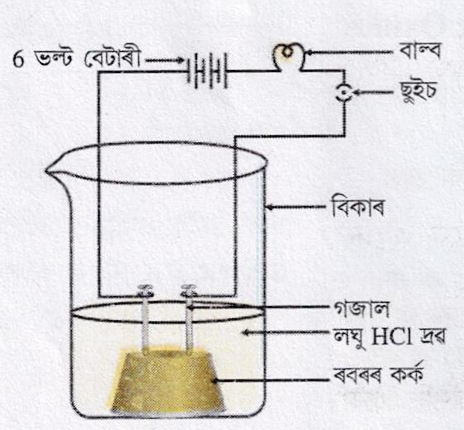 পৰ্যবেক্ষণ : গ্লুক'জ বা এলক'হলৰ দ্ৰৱৰ ক্ষেত্ৰত বাল্বটো নজ্বলে | ই ইয়াক সূচায় যে গ্লুক'জ বা এলক'হল দ্ৰৱটোৱে কোনো ধৰণৰ H+ আয়ন উৎন্ন কৰা নাই | সেয়েহে দ্ৰৱটোৰ মাজেৰে বিদ্যুৎ পৰিবহন হোৱা নাই | অৰ্থ্যাৎ গ্লক'জ বা এলক'হলৰ দ্ৰৱক এছিড হিচাপে চিনাক্ত কৰিব নোৱাৰি |