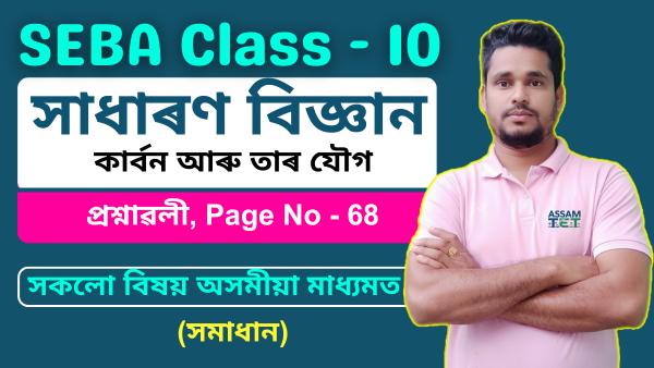 SCERT দশম শ্ৰেণী সাধাৰণ বিজ্ঞান, কাৰ্বন আৰু তাৰ যৌগ প্ৰশ্নাৱলী (Page No - 68) উত্তৰসহ। দশম শ্ৰেণীৰ শিক্ষাৰ্থীৰ বাবে সম্পূৰ্ণ সমাধান। Assam Board SEBA Class 10 Science Chapter Carbon and its Compounds Questions and Answers in Assamese Medium.
